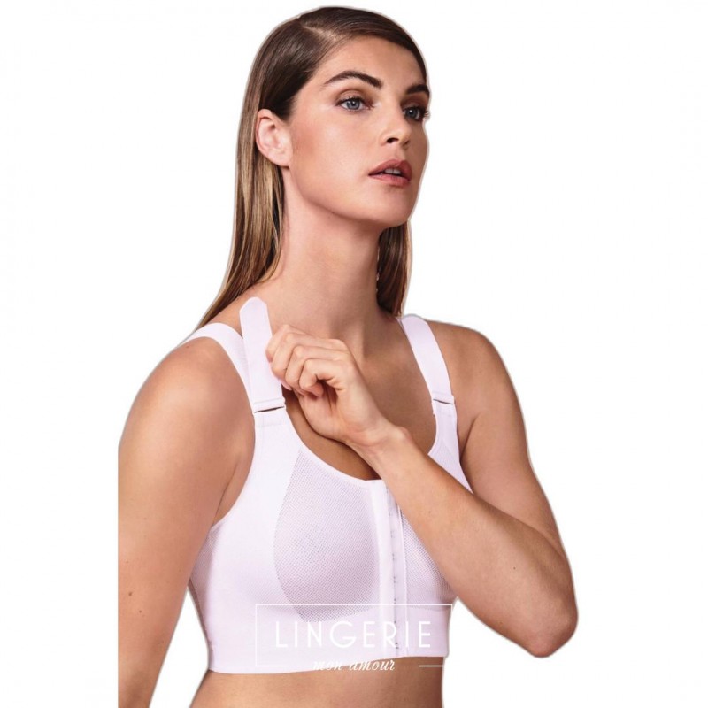 Brassière sans armatures au grand confort. Elastique sous poitrine et plusieurs niveaux de réglages de la bretelle par scratch. Fermeture par agrafes à l'avant. Soutien-gorge aéré post opératoire qui préserve votre poitrine après l'intervention chirurgicale.